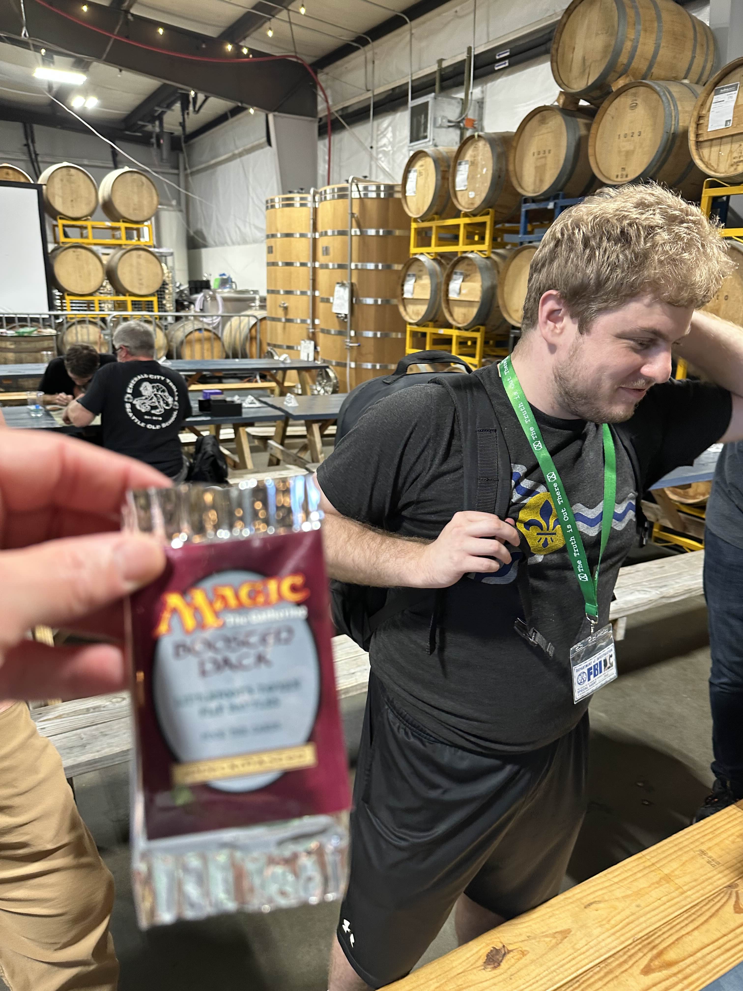 Friday's event was The X-Files: I Want to Believe, another special one-time only rule set with an X-Files theme and held at Reuben's Barrel House in the Ballard neighborhood of Seattle. Another big twist in this event besides the theme this time was the introduction of pogs to the game of Magic. Special rules added pogs to the game, with players receiving a stack of pogs to play with. The pogs had various game effects on them, and the rules gave players game actions they could take to stack up pogs and use their slammer to flip them over. Or try to at least. Any pogs that they flipped over would have a game effect, such as drawing some cards, doing 3 damage, making an opponent discard some cards, or even more powerful effects like making both players mill most of their library, making them switch life totals, or taking an extra turn. So these were very powerful effects and good strategies often involved trying to leverage the pogs in the game.
