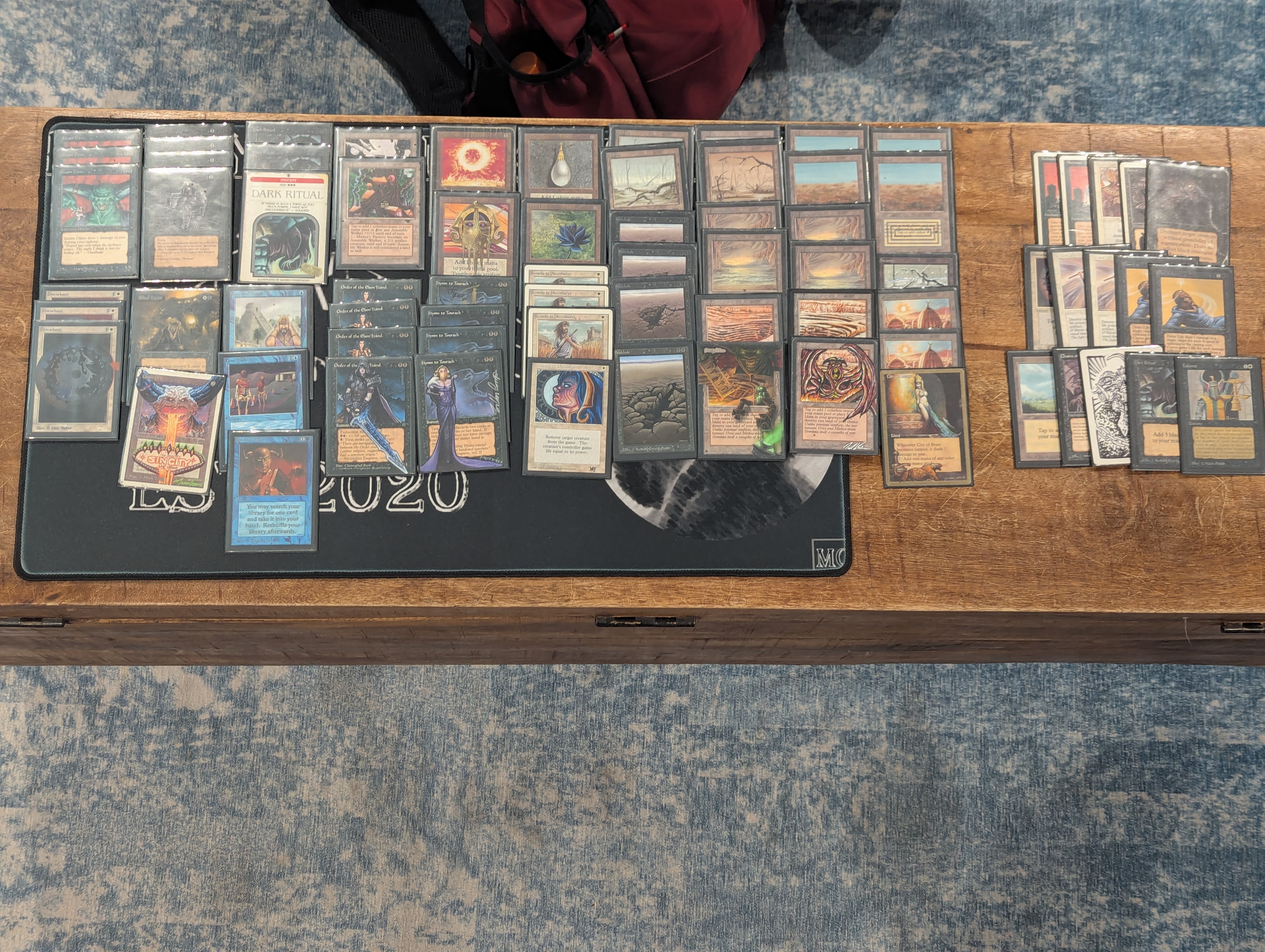 This tournament was a short, fun warm-up event to kick off the weekend. We had hoped to play 4 rounds, but only managed to fit in 3. From what I heard though, I still think players had a really good time with the format. More fun than people thought it would be :) Admittedly, the rules are a bit long and take a while to read. But they kind of make sense once you get used to playing it a little bit and get a game or two under your belt. Then it seemed like it was a pretty interesting twist on our well-loved game of Old School Magic.