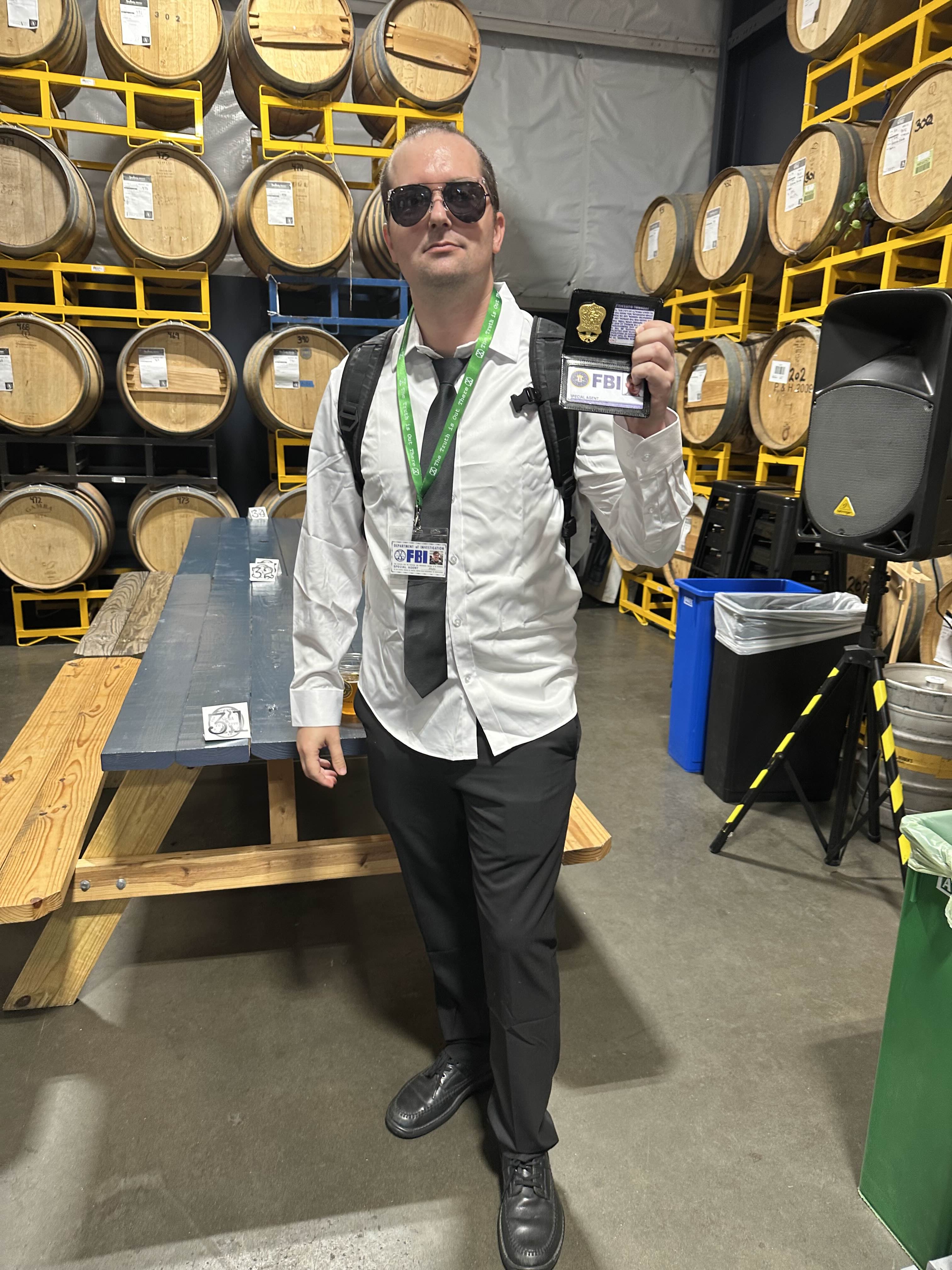 When we arrived on Friday, we followed a lead that took us to the back warehouse of a brewery. Barrels were stacked high up to the ceiling. When we peeked in, we saw what appeared to be a large group of middle-aged nerds playing some sort of card game. They all had on FBI badges, but to look at them, there was no way these people were FBI agents. They were also playing with stacks of round discs -- saucers, maybe? -- that they would strike with another disk. It reminded me of something, but I couldn't quite place my finger on it.